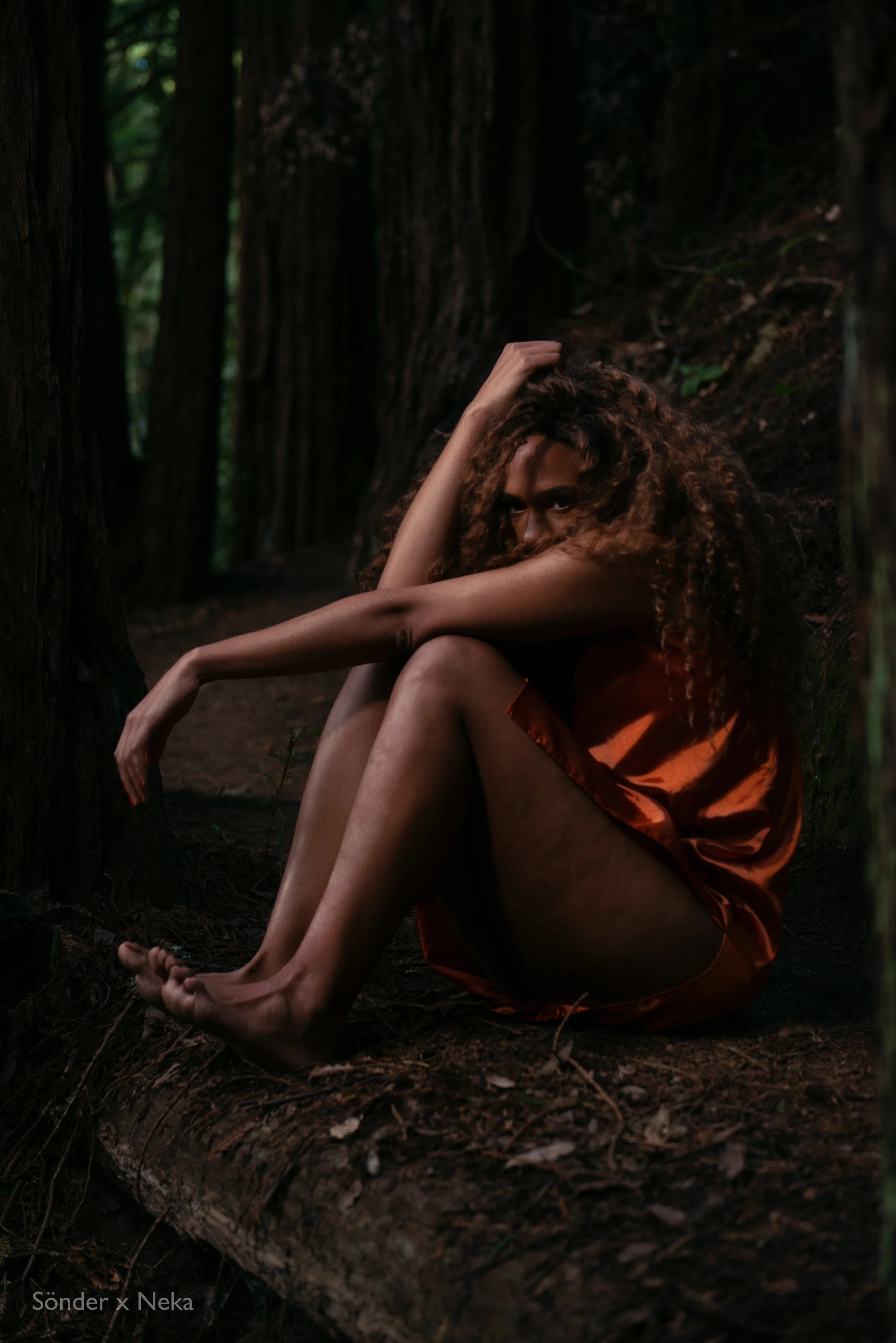Working with Neka Collection on her Orange silk gown. The story Of this collection is of the fall into reality and the confusion that comes with it.